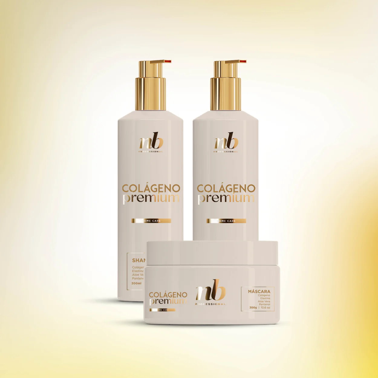 A linha Home Care Colágeno da NB oferece um tratamento completo para cabelos mais fortes e hidratados com shampoo, condicionador e máscara de 300g.