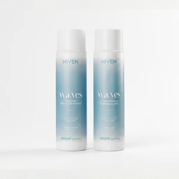 O kit Hiven Waves traz shampoo anti-ressecamento e condicionador desembaraçante para cuidar do cabelo com eficiência e maciez profunda.